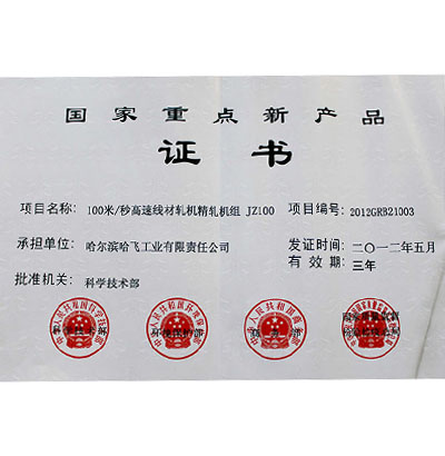 國(guó)家重點(diǎn)新產(chǎn)品證書(shū)