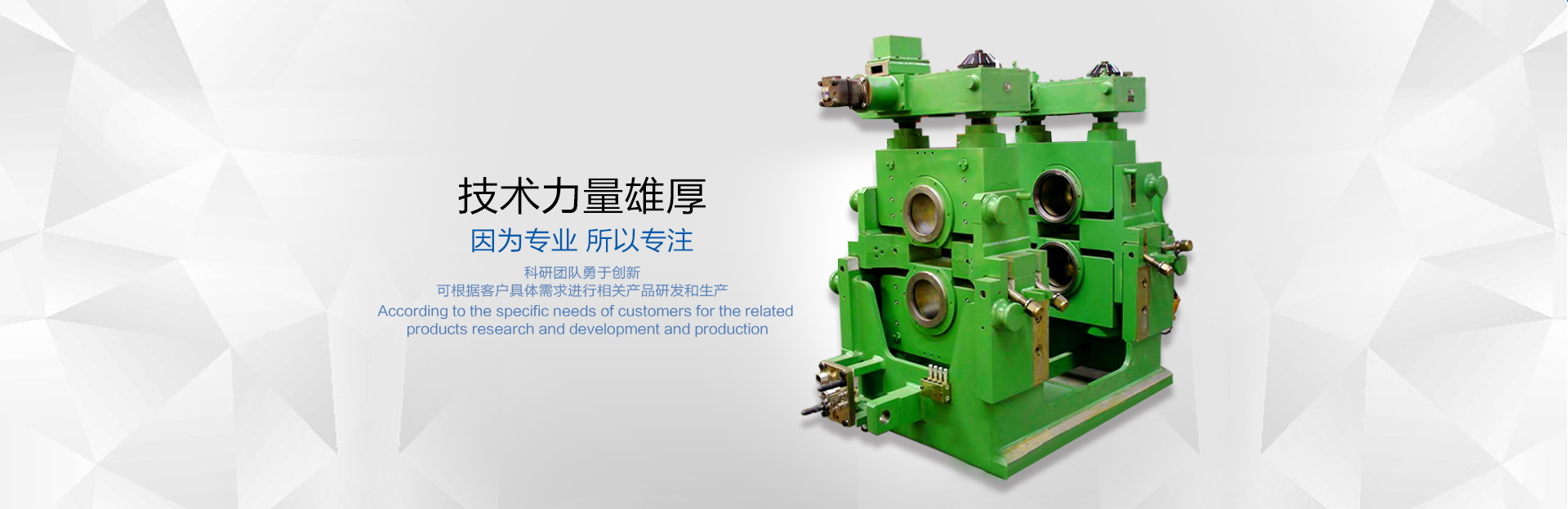 哈爾濱哈飛工業(yè)有限責(zé)任公司旗下的機(jī)電設(shè)備制造產(chǎn)業(yè)是目前國(guó)內(nèi)規(guī)模大、專業(yè)的高速線材軋機(jī)和棒材軋機(jī)整機(jī)及備件的生產(chǎn)制造企業(yè)。公司現(xiàn)坐落于哈爾濱市平房區(qū)汽車零部件工業(yè)園B區(qū),占地面積30000多平方米。現(xiàn)有員工近550人,其中具有中高級(jí)職稱的研發(fā)及工程技術(shù)人員100余人。   公司曾獲得冶金部授予的“高線軋機(jī)設(shè)備優(yōu)單位”稱號(hào)、國(guó)家技術(shù)進(jìn)步二等獎(jiǎng)等獎(jiǎng)項(xiàng),公司生產(chǎn)的十八項(xiàng)高線軋機(jī)重要部件通過(guò)了技術(shù)鑒定... +MORE